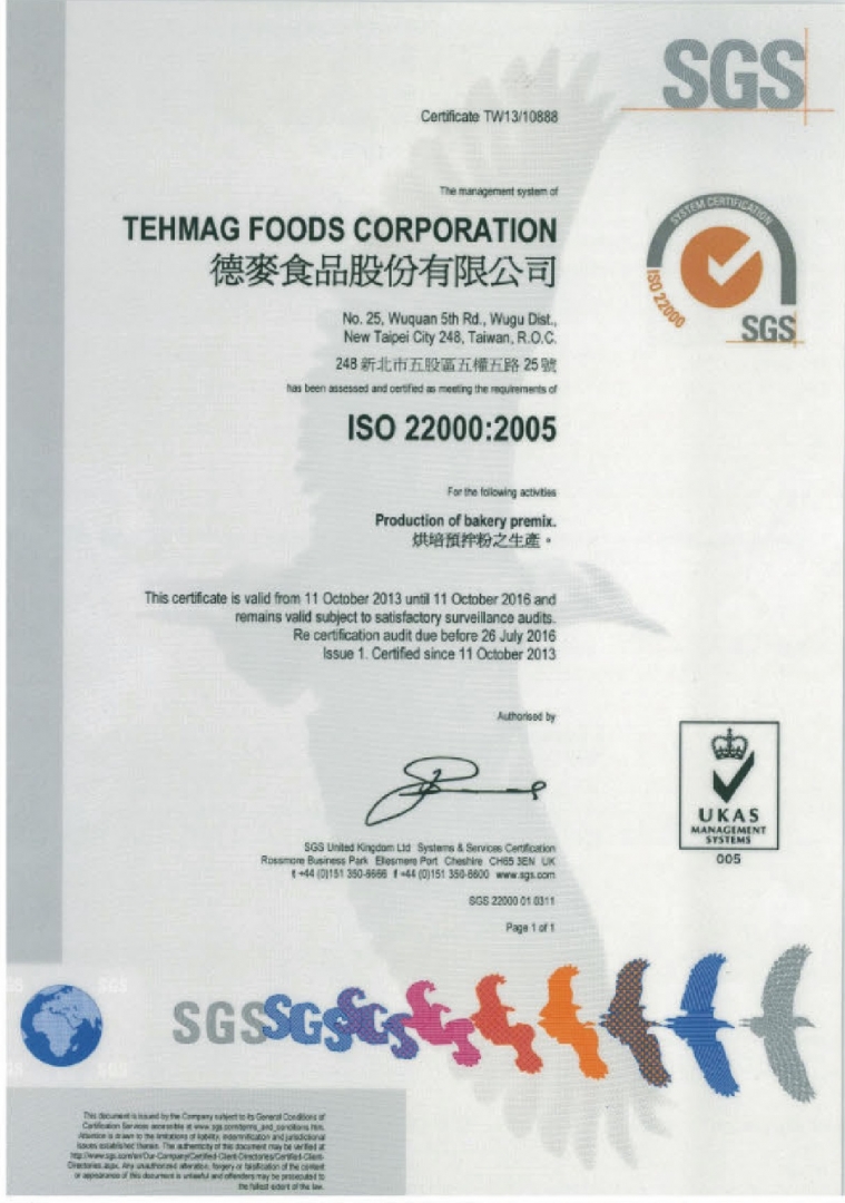 Tehmag Food Cooperation was established in 1989, it’sbegan operating import of all types of high quality baking ingredients. Uphold “Sincere concern ground, baked good partner” philosophy. Tehmag insists on professional servise and has a good reputation in the baking industry. Tehmag gets a lot of sup[port and trust from customers to become a solid foundation.
