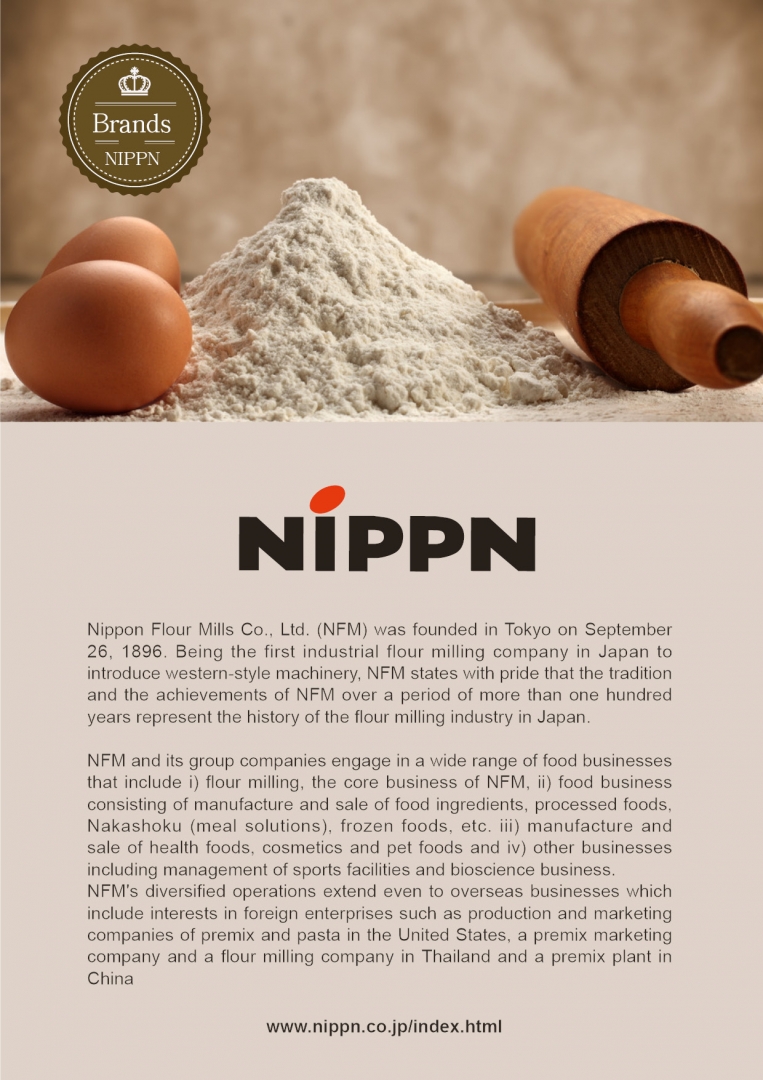 Nippon Flour Mills Co., Ltd. (NFM) was founded in Tokyo on September 26, 1896. Being the first industrial flour milling company in Japan to introduce western-style machinery, NFM states with pride that the tradition and the achievements of NFM over a period of more than one hundred years represent the history of the flour milling industry in Japan.