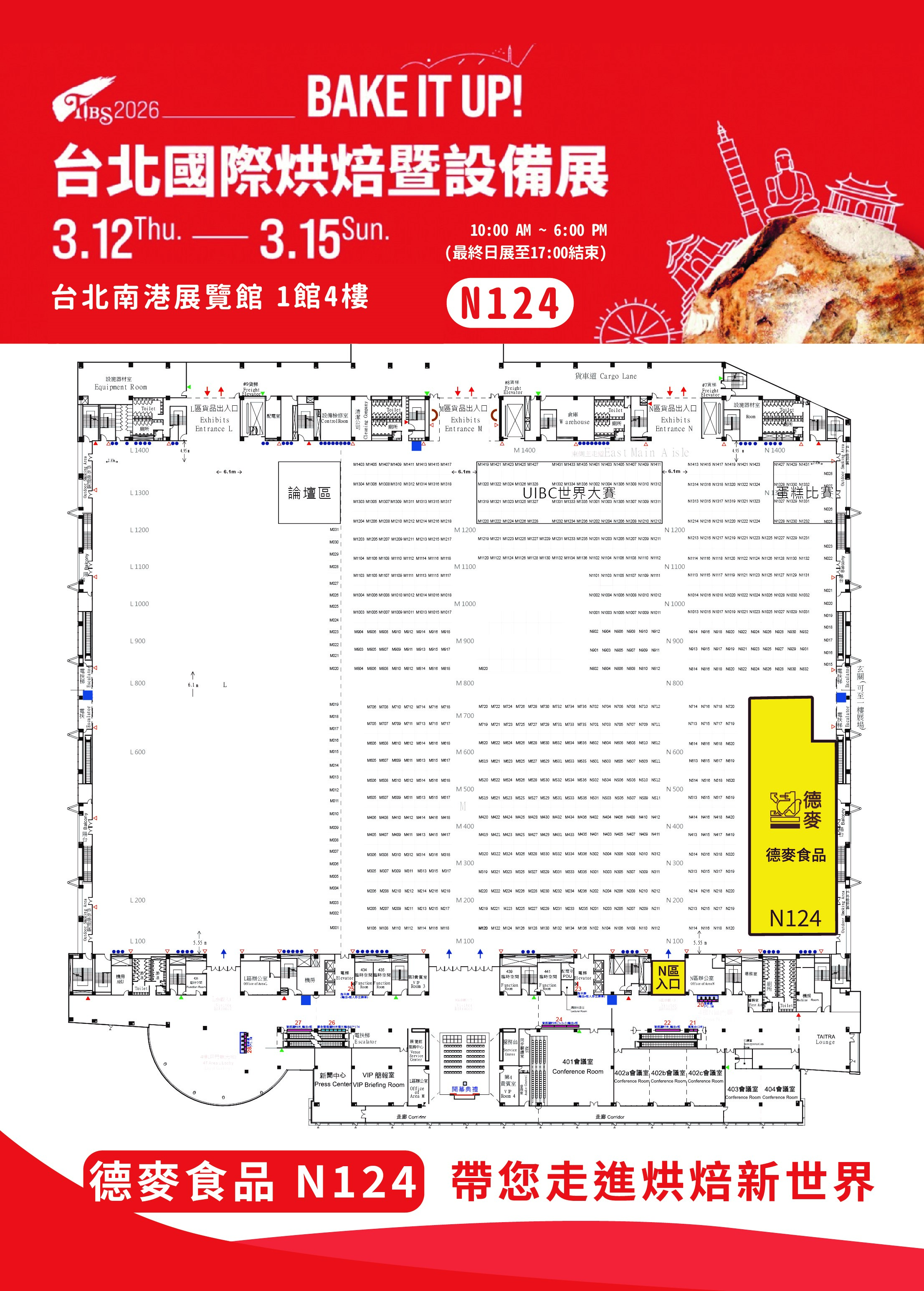 誠摯邀請烘焙同好於3/12(四)– 3/15(日),蒞臨『台北南港展覽館』一館4F德麥食品N124攤位。現場將是與同業交流、探索趨勢與人力解方的最佳舞台,為你的烘焙事業注入靈感與動能。