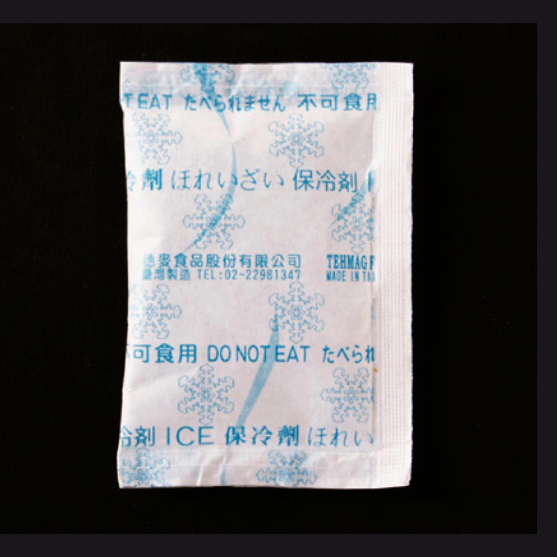 外層棉紙,吸收凝結水特強 水份緩釋劑無毒無害無螢光劑(本產品無毒無害,可重覆使用) 編號:LAA005 產地:台灣 規格:尺寸:6X13cm包裝:60g/pcs;200pcs/箱 保存方式:將保冷劑置入冷凍庫內( 8 小時以上) 至完全凍結, 再以透明膠帶黏貼於產品盒蓋上或置於側邊。