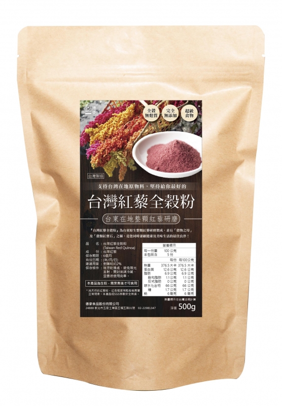 台灣紅藜全穀粉為台東原生整顆紅藜研磨製成,素有「穀物之母」及「穀物紅寶石」之稱,是兼顧健康與美味的最佳良伴